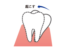 歯が倒れていると、その部分にプラークが溜まりやすく、歯周病が進行しやすい環境です。矯正治療で倒れた歯を起こしていきます。